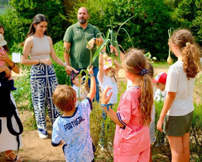 Students co-create and maintain gardens at school, learning about local biodiversity, hands-on food production, and sustainability.